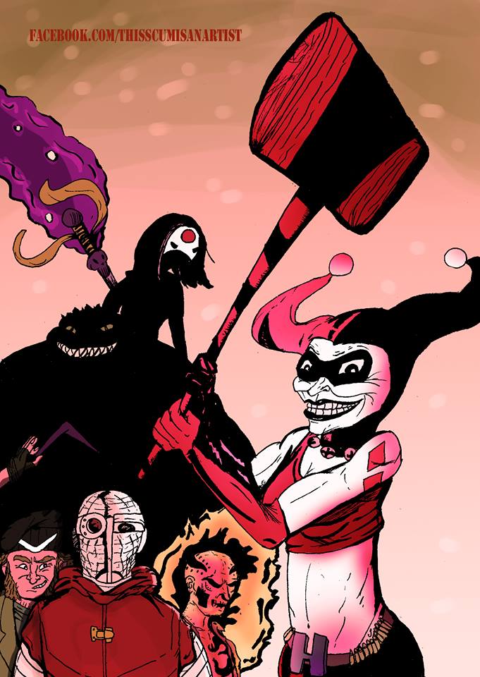 Στην συνέχεια, ο Γιώργος ανέλαβε πάλι να γεμίσει το διάλλειμα με τις μουσικές του και εμείς να δούμε τις δουλειές των παιδιών μέχρι να πάρει θέση ο Στράτος Χουβαρδάς από το Comics in Greece, φορτωμένος και δωράκια για το κοινό! Αυτός με την σειρά του μας ταξίδεψε στην ιστορία της μεγάλης πρωταγωνίστριας της ταινίας, της Harley Quinn, από την πρώτη της εμφάνιση στο κλασσικό πλέον Batman The Animated Series και το Mad Love έως και το New 52. Ανέλυσε τα κομβικά σημεία του χαρακτήρα που την έκαναν τόσο αγαπητή στο κοινό, αλλά και διάφορα στοιχεία ψιλόάγνωστα στο ευρύ κοινό, όπως λόγου χάρη το ότι οι δημιουργοί της αντισυμβατικής ηρωίδας/ υπερκακού, ο Paul Dini και ο Bruce Timm την “εμπνεύστηκαν” από την σαπουνόπερα Days of Our Lives (ναι, την ίδια που έπαιζει ο Τζόι από τα Φιλαράκια) και της έδωσαν μάλιστα και το όνομα μιας ηθοποιού της σειράς! Ανφέρθηκε και στο πως μια μερίδα του κοινού μετέτρεψε την Harley σε σεξουαλική φαντασίωση αλλά και στο πως μια άλλη, κυρίως γυναίκες fans βλέπουν στον χαρακτήρα μια φεμινιστική δυναμική που δύσκολα βρίσκει κανείς αλλού. Σε κάθε περίπτωση όμως η επικίνδυνη αρλεκίνος είναι μια φιγούρα με πολύ πάθος, για αυτό και έχει αγαπηθεί τόσο πολύ….