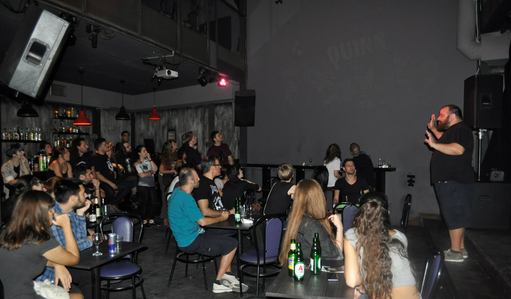 Ανεβαίνοντας την Λεπενιώτου βλέπαμε διάφορα πρόσωπα να πλησιάζουν το μαγαζί, πολλά γνωστά και άλλα όμως εντελώς άγνωστα. Μπαίνοντας μέσα αντικρύσαμε την γνώριμη πλέον φιγούρα του Γιώργου Σαφελά, της ψυχής των Reflections, πίσω από τα decks να ντύνει την αναμονή με τις μελωδίες του. Το μέρος ήταν ήδη γεμάτο και πριν προλάβουμε να θαυμάσουμε το artwork των καλλιτεχνών που κοσμούσε τους τοίχους, ήρθε η ώρα να ξεκινήσει η εκδήλωση! Ο γνωστός Ανδρέας Μιχαηλίδης, ντυμένος με μπλούζάκι που έφερε το οικόσημα και τα δυσοίωνα λόγια των Stark, κήρυξη την έναρξη όλης της σεζόν και αμέσως μετά την σκυτάλη πήρε ο δικός μας Νίκος Τραγγανίδας που αναφέρθηκε ως επί το πλείστον στην ταινία Suicide Squad (η άποψη μας εδώ) και στην κόντρα που (ξανα)ξέσπασε μεταξύ κοινού και κριτικών για το αν τελικά η ταινία άξιζε το θάψιμο που έφαγε ή όχι, για την θέση που κράτησε η ίδια η ταινία απέναντι στους χαρακτήρες της και την ιστορία τους και το πόσο τελικά “ομάδα” ήταν τα μέλη της Suicide Squad….