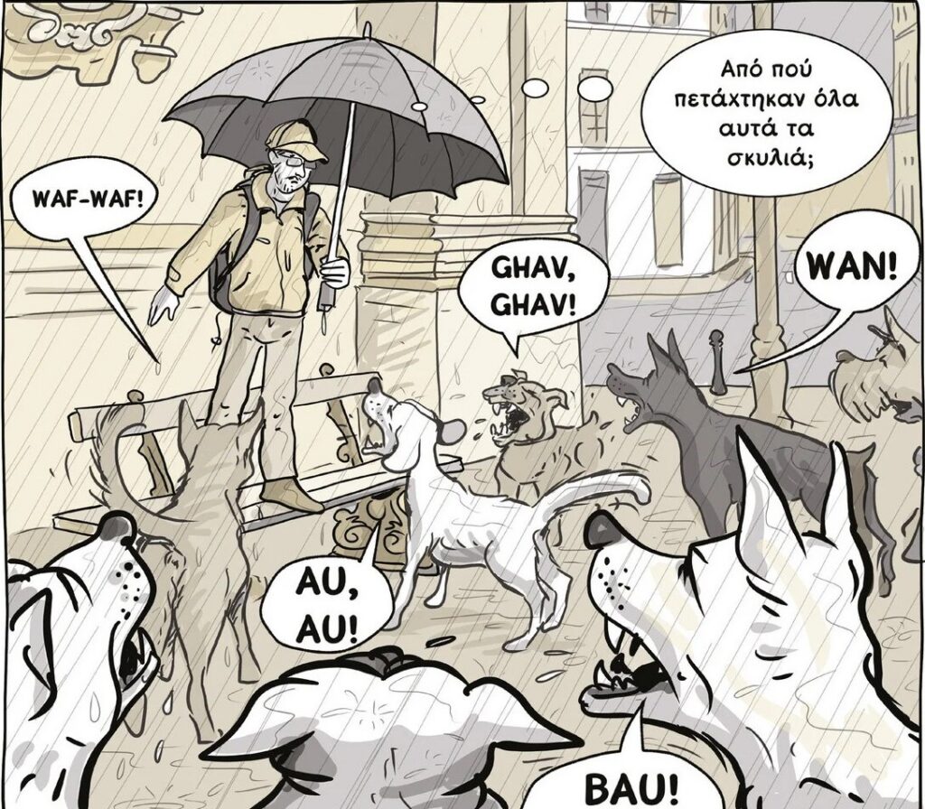 Η παραβολή του Πύργου της Βαβέλ αναδημιουργείται εικαστικά στην εναρκτήρια σκηνή του νέου έργου του Soloúp, παραπέμποντας υπαινικτικά -πέρα από τον τίτλο- στο ομώνυμο θρυλικό περιοδικό των ‘80s και ‘90s. Ο πρόλογος αυτός του έργου, ένα μωσαϊκό αντιδανείων και ετεροαναφορών, μοιάζει με μία σπουδή στη φόρμα των graphic novels, όπως ο ίδιος ο δημιουργός την έχει μελετήσει και συστηματοποιήσει στο θεωρητικό μέρος του βιβλίου που συνέγραψε σε συνεργασία με την Ευαγγελία Μουλά «Comics & Graphic Novels με Οδηγό το Αϊβαλί – Τα Κόμικς στην Εκπαίδευση».