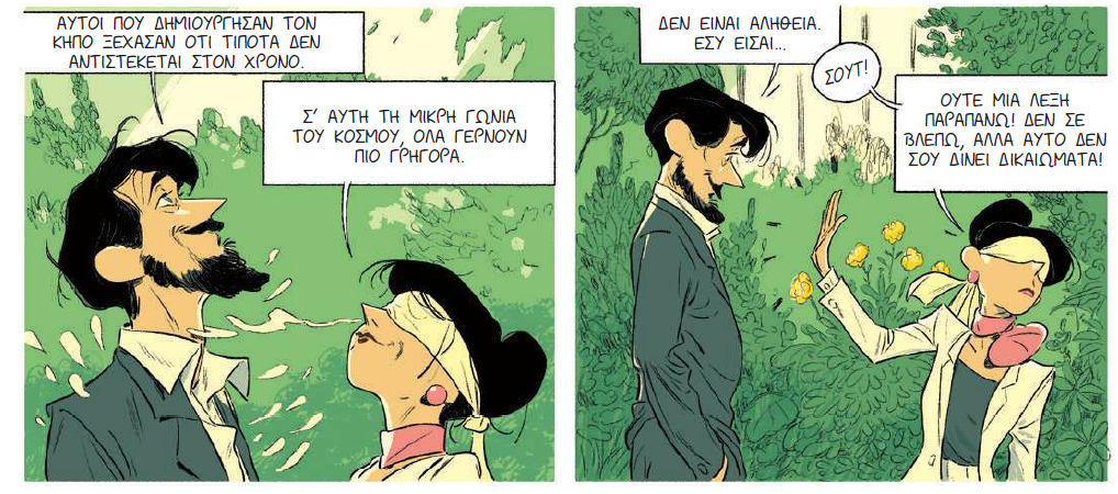 Το «Πάντα Ποτέ» του Jordi Lafebre (στα ελληνικά από τις εκδόσεις Μικρός Ήρως) αποτελεί αναμφίβολα ένα από τα πιο τρυφερά κόμικς που κυκλοφόρησαν τα τελευταία χρόνια. Ταυτόχρονα, όμως, είναι και ένα από τα πιο ενδιαφέροντα έργα ως προς την σκηνοθεσία του, καθώς η σύλληψη της αντιστροφής του χρόνου δημιουργεί μία ξεχωριστή συνθήκη, όπου η δυναμική του έρωτα δραπετεύει από την παγίδα του happy end. Καθώς το τέλος μας είναι ήδη γνωστό από την πρώτη σελίδα, το μυστήριο μετατοπίζεται από την προσμονή για τη ρομαντική κατάληξη, στην επιμονή στη διάρκεια του έρωτα.