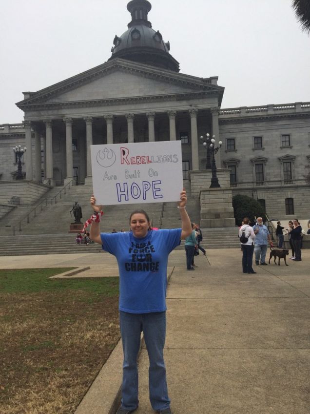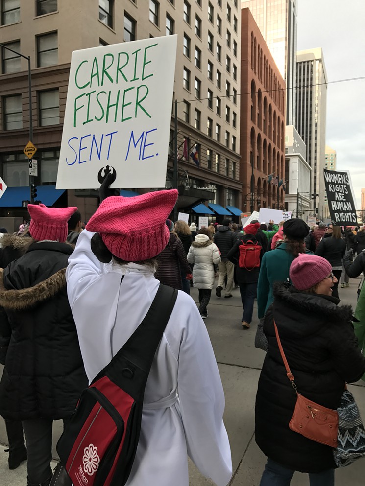 Ένας από τους λόγους είναι βέβαια και η χρήση συμβόλων και χαρακτήρων από την μαζική κουλτούρα, που με τον δικό τους τρόπο δίνουν τον αγώνα τους εναντίον του ρατσιμού, του σεξισμού και της ομοφοβίας. Μπροστάρισσα σε αυτό δεν θα μπορούσε να είναι άλλη από την εικόνα της αδικοχαμένης Carrie Fisher ως Princess (Senator και General ) Leia.