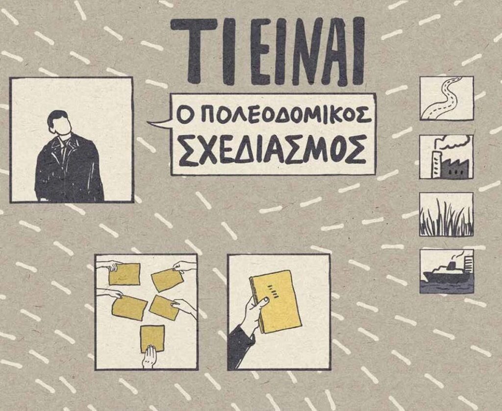 Με δύο από τους συντελεστές του βιβλίου, τον κειμενογράφο Κωστή και τον Κλεάνθη από τις «Εκδόσεις του Αύριο», βρεθήκαμε σε κοινά αμφιθέατρα μίας σχολής που μέχρι και το ξέσπασμα της κρίσης ήταν άμεσα συνδεδεμένη με τη σίγουρη επαγγελματική αποκατάσταση, αλλά και με την αστική αντίληψη για την ανάπτυξη, όπως αυτή δέσποζε την περίοδο των Ολυμπιακών αγώνων της Αθήνας. Η σχολή των πολιτικών μηχανικών, μας παρείχε μεν τεχνικές γνώσεις, αλλά σε μία στενά τεχνοκρατική θεώρηση, ενώ οι αναφορές σε σχέση με τον αρχιτεκτονικό ή πολεοδομικό σχεδιασμό ή με τις περιβαλλοντικές και κοινωνικές επιπτώσεις των έργων που μαθαίναμε να σχεδιάζουμε, αυτές απουσίαζαν. Το μάθημα της Πολεοδομίας ήταν ίσως από τα λίγα που αποτελούσαν εξαίρεση μέσα σε αυτό το γενικότερο πλαίσιο και δίναμε μάχη για να μην αφαιρεθεί από το πρόγραμμα σπουδών.