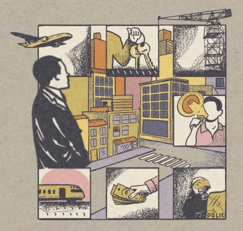 Μέσα από μία πολύ επιτυχημένη αφήγηση και εικονογράφηση το βιβλίο εξηγεί ότι η ύπαρξη και η εξέλιξη των πόλεων συνδέεται άρρηκτα με την πορεία όλων των πολιτικών και οικονομικών συστημάτων στην ιστορία της ανθρωπότητας. Το κεφαλαιοκρατικό́ σύστημα, πέρασε από διαφορετικές φάσεις και στάδια, περιόδους ανάπτυξης και κρίσης. Κάθε μια από αυτές μετασχημάτισε τις πόλεις με τέτοιο τρόπο που αντιστοιχούσε στην κάθε ιστορική καμπή, αλλά και στα ιδιαίτερα χαρακτηριστικά του κάθε τόπου, μέσα από διαδικασίες άνισης γεωγραφικής ανάπτυξης, γεμάτες από  αντιθέσεις.