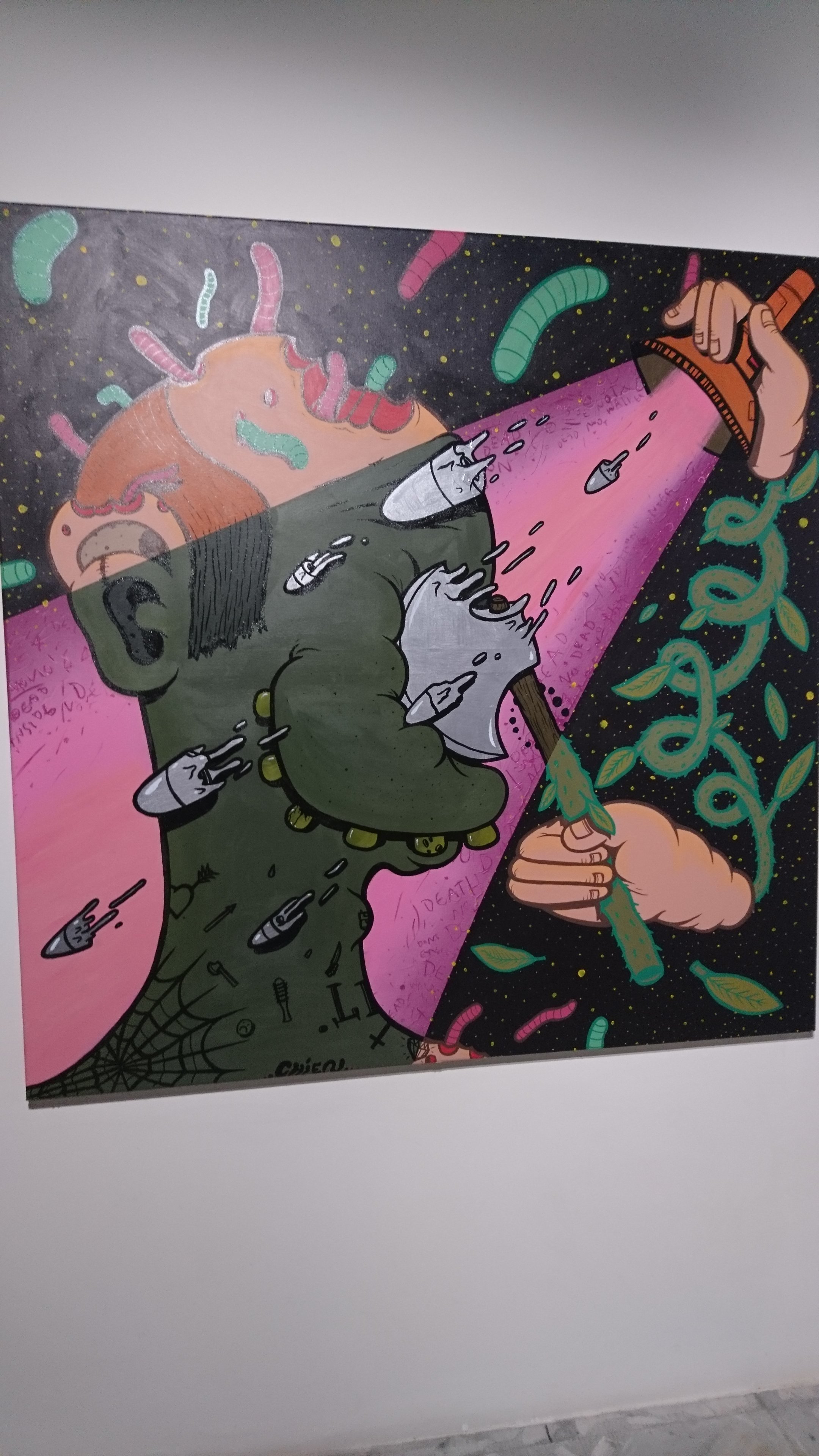 το “Carpets 2” του Βασίλη Καρακατσάνη, δίνει μια σουρρεαλιστική χροιά στην έκθεση και συμβολίζει την φυγή στο ασυνείδητο και το αυθόρμητο