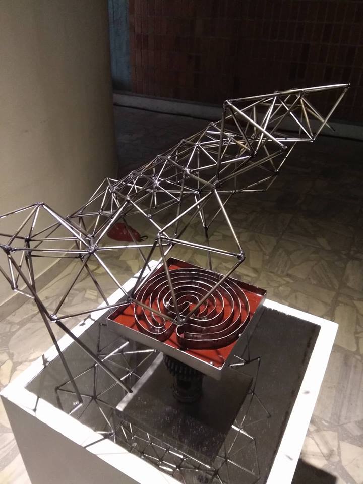 το γλυπτό “Δεσμός” της Δανάης Νικολαΐδη-Κωτσάκη, με την ιδιαίτερη πολυπλοκότητα και μηχανιστική εμφάνιση τονίζει το πολυδαίδαλο ταξίδι της σκέψης δωσμένο υπό το πρίσμα της συνεχούς επαγρύπνησης και ανάγκης για επιβίωση