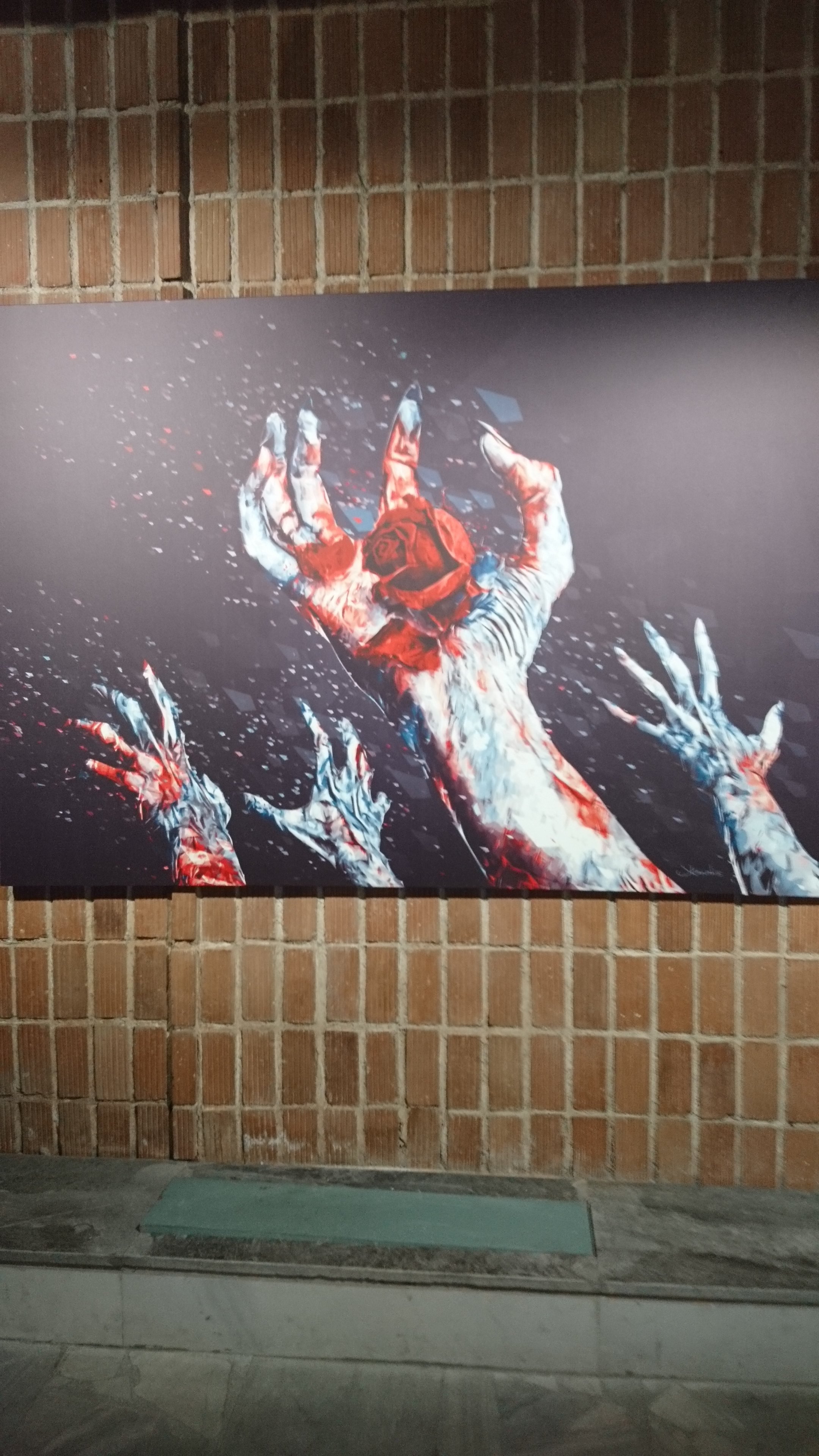 Στις 18 Μαρτίου ολοκληρώθηκε μια ενδιαφέρουσα έκθεση έργων τέχνης σε συνεργασία της FOX με το Ωδείο Αθηνών. Η σειρά για το zombie apocalypse που διανύει την 8η σαιζόν, βρήκε την θέση της στο ελληνικό κοινό οπότε και η έκθεση είχε και την ανάλογη μαζικότητα. Δεκάδες έργα αφορμόμενα από το κεντρικό στοιχείο της σειράς, δηλαδή τα zombie, αποτέλεσαν ένα ενδιαφέρον εικαστικό σχόλιο για τα στενά όρια μεταξύ ζωής και θανάτου, το εφήμερο της ζωής και το αναπόφευκτο του θανάτου, εκφρασμένο μέσα από μια σειρά μορφών: γλυπτά, μάσκες, μεταλλικές κατασκευές, digital art και αφηρημένα έργα τέχνης. Η αλληγορία της δυστοπικής κοινωνίας που επικρατεί το ένστικτο της επιβίωσης παράλληλα με τον κανιβαλισμό, έχει ένα ειδικό βάρος ως προς την συσχέτιση των τωρινών προσωπικών και εργασιακών σχέσεων και άφησε το στίγμα του στα περισσότερα εκθέματα.