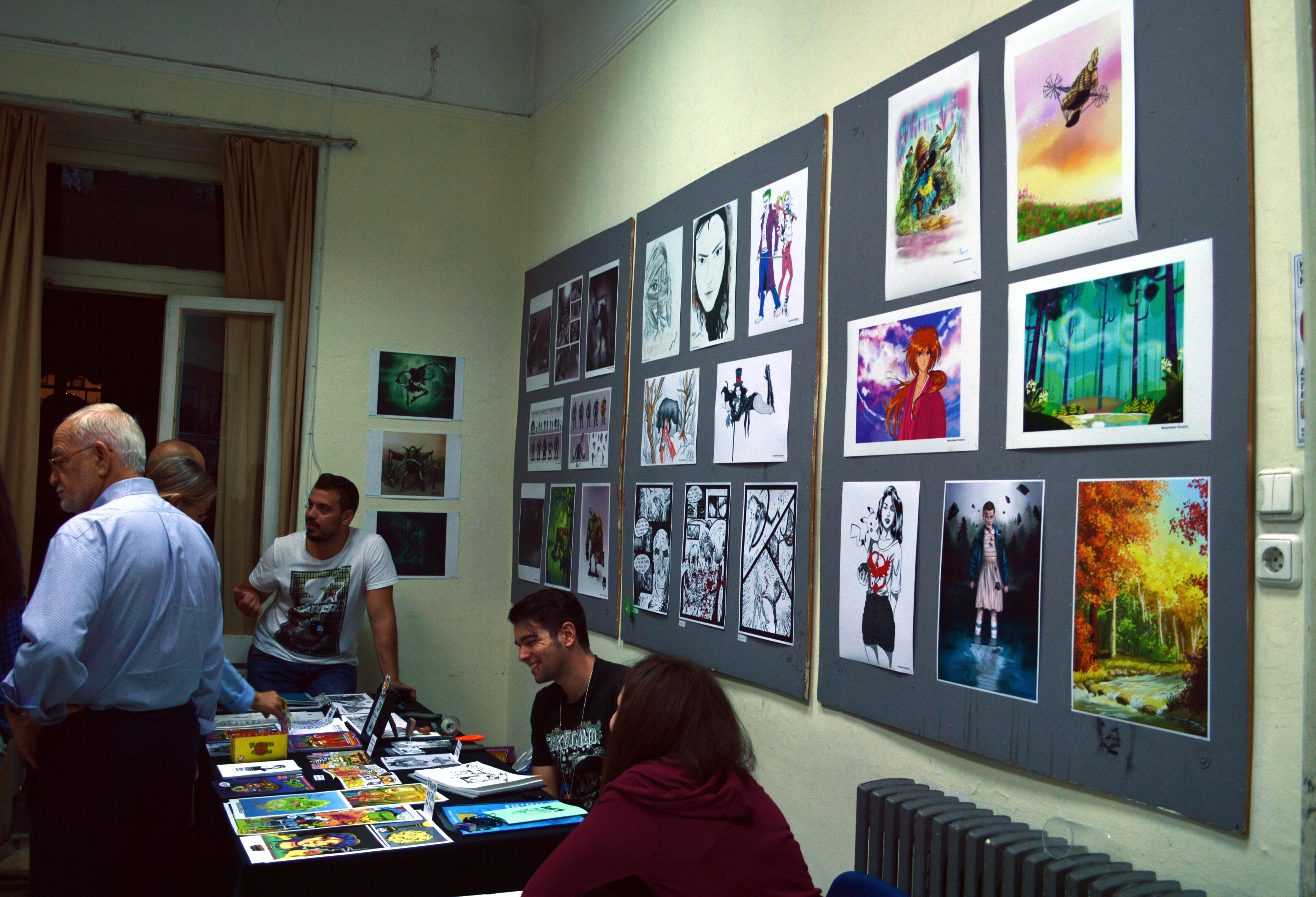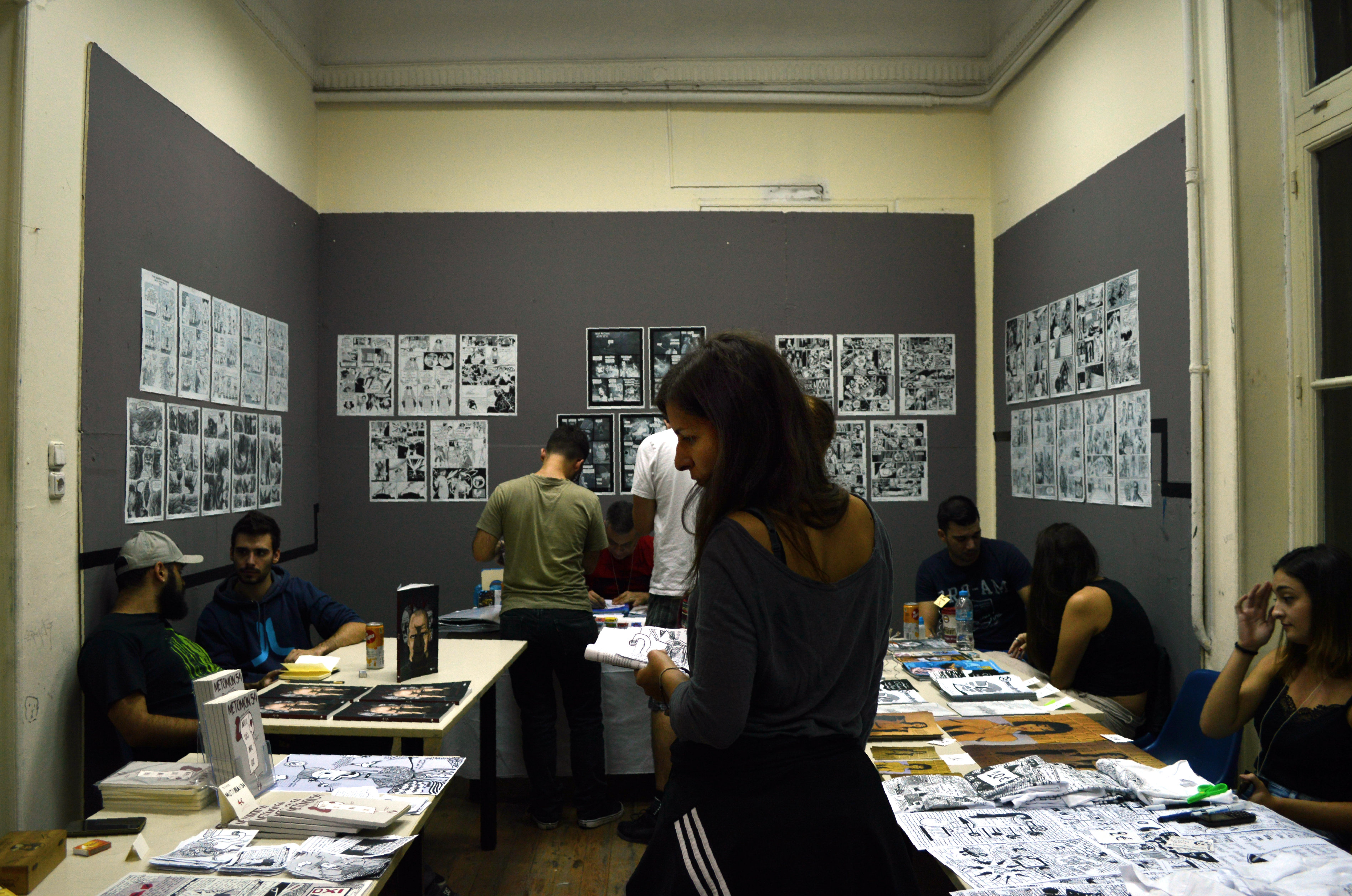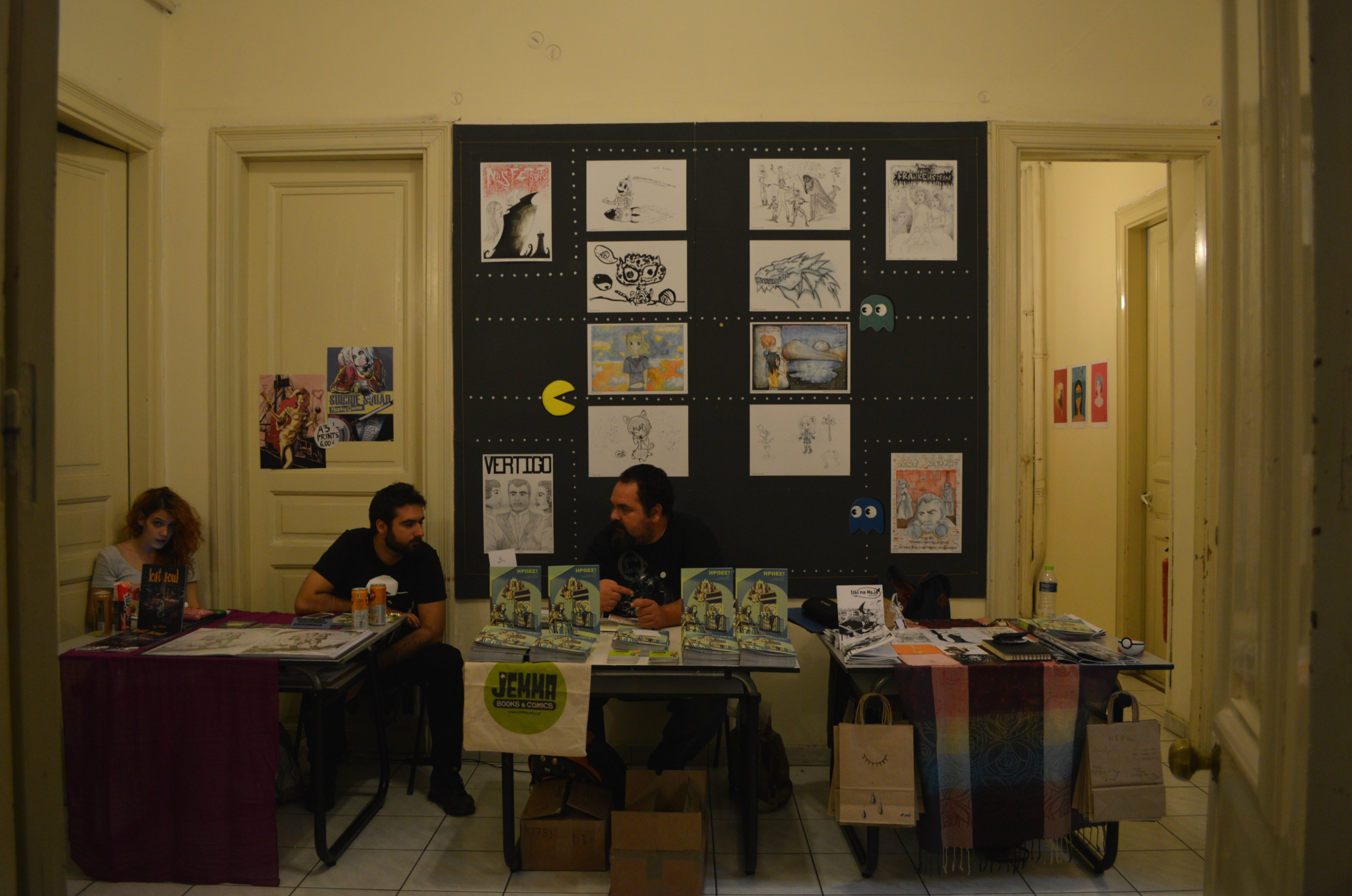 Μετά από έναν ανεπαίσθητο απόπροσανατολισμό, βρεθήκαμε στον πρώτο όροφο, όπου φιλοξενούνταν τα fanzines, οι αυτοεκδόσεις, αλλά και οι νικητές του διαγωνιμού “Ήρωες” της Jemma Press, όπου με χαρά είδαμε ανάμεσα τους την γνωστή Αniro! Οι υπόλοιποι νικητές του διαγωνισμού ήταν ο Θανάσης Παγνκέας και ο Aρης Λάμπος. Στον ίδιο όροφο βρήκαμε και άλλες γνώριμες φιγούρες, όπως τον Ανδρέα Μιχαηλίδη, τον Γιάννη Ρουμπούλια. αλλά και άλλους δημιουργούς που θα μας απασχολήσουν σίγουρα στο μέλλον! Να επισημάνουμε για άλλη μια φορά πως οι τιμές των έργων ήταν ιδιαίτερα χαμηλές, αναγνωριστικές σχεδόν, πράγμα για το οποίο αξίζει να δώσουμε συγχαρητήρια στους δημιουργούς, καθώς τα κόστη της αυτοέκδοσης στις μέρες μας είναι σχεδόν απαγορευτικά και το κέρδος πολλές φορές δεν είναι ούτε το αναμενόμενο ούτε ικανό να συντηρήσει έναν καλλιτέχνη.