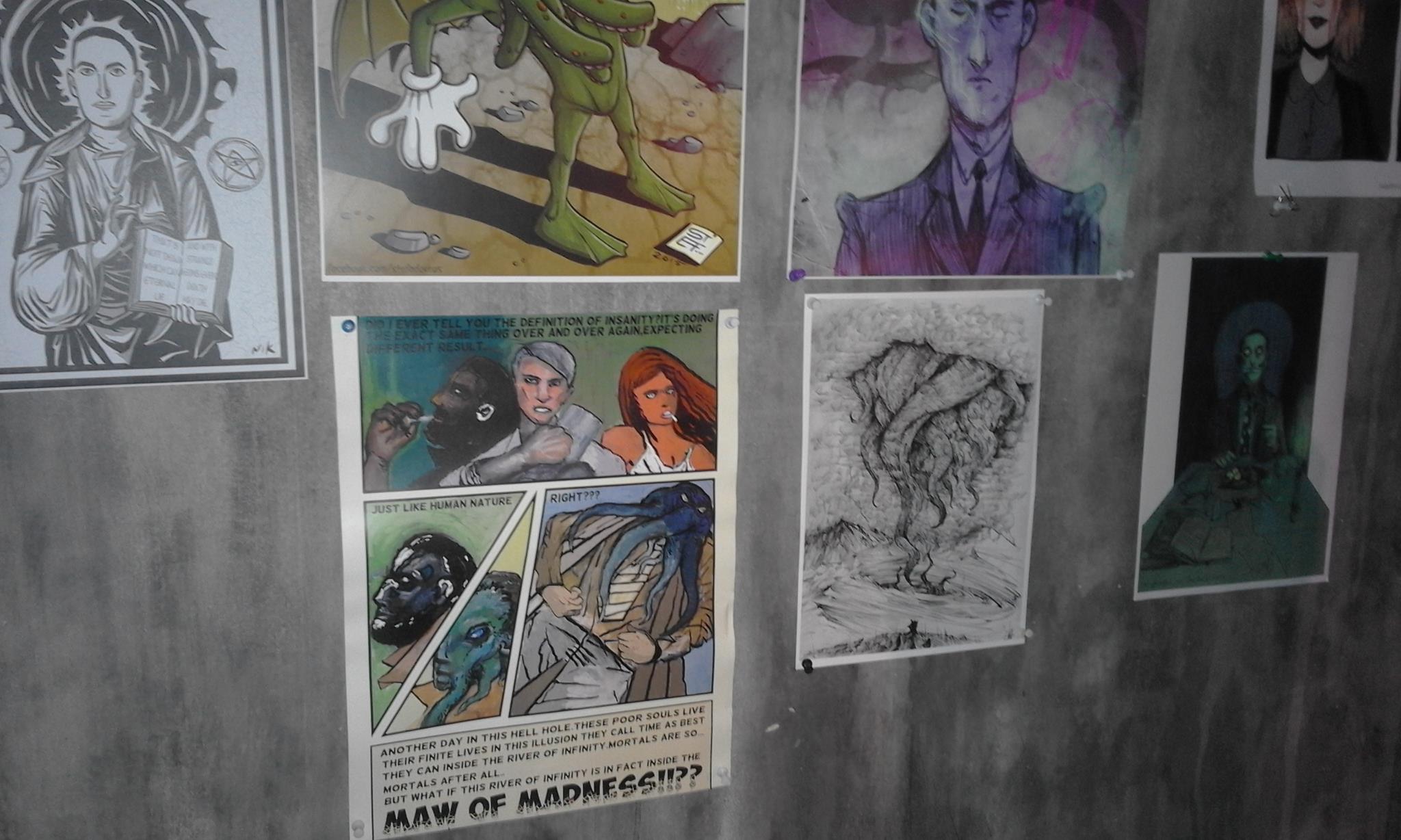 Συγχρόνως με αυτά, η Death Disco φιλοξενούσε σκίτσα και έργα πολλών καλλιτεχνών με θέμα τους τόσο την μυθολογία Κθούλου, όσο και την ίδια την αγαπημένη μορφή του Lovecraft, ενώ όποιος ήθελε μπορούσε να προμηθευτεί έργα και κάρτες των ομιλητών στο κοντά στο μπαρ. Αξίζει τέλος να αναφέρουμε τα πολύ γουστόζικα χειροποίητα που υπήρχαν στους πάγκους, τα οποία κόσμησαν τελικά τα χέρια και τα σπίτια πολλών τυχερών…